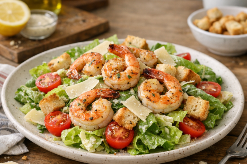 Classic Shrimp Caesar Salad with Seafood Twist A fresh and…